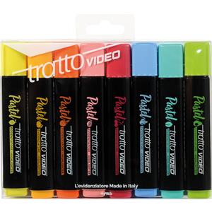 Tratto Video Pastel - Evidenziatore Made in Italy con Inchiostro a Base Acqua, Punta Scalpello, 1,5 mm, 8 Colori Pastello Assortiti in Astuccio Eco-Friendly