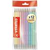 STABILO Matita in grafite Swano Pastel HB - Con gommino - Colori assortiti pastel - Confezione da 12 pezzi