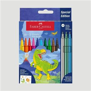 Faber-Castell Pennarelli Dinosauro - Confezione da 13 pz con 10 Colori Brillanti e 3 Metallici, Punta in Feltro e Adesivi Inclusi