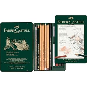 Faber-Castell Pitt Monochrome Set da Disegno - 12 Pezzi in Confezione di Metallo