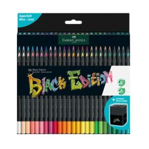 Faber-Castell 116450 Black Edition Set di 50 Matite Colorate - Mina Supersoft, Resistenti alla Rottura, Fusto Triangolare Ergonomico, Colori Vibranti per Carta Chiara e Scura