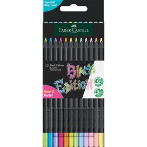 Faber-Castell 116410 Black Edition Set di 12 Matite Colorate Neon & Pastel, Ergonomiche e Resistenti alla Rottura, Ideali per Carta Chiara e Scura