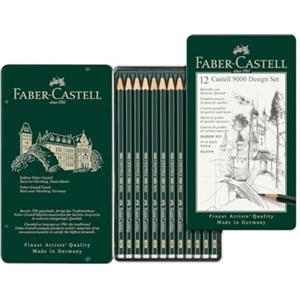 Faber-Castell Castell 9000 - Set di 12 matite di grafite in astuccio di metallo, durezza 5B-5H, ideali per lavori grafici