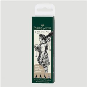 Faber-Castell 167153 Penna Pitt Artist Set da 4 - Nero, 1.5 mm, C, B, Fude Medium