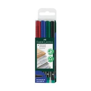 Faber-Castell 152504 Pennarello Multimark Permanente con Punta Media 1,0mm - Confezione da 4 Colori (Rosso, Blu, Verde, Nero) con Gomma sul Retro