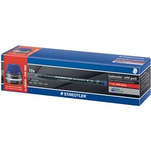 Staedtler Lumocolor Penna Permanente Blu con Punta Fine 0.6 mm e Refill da 15 ml - Confezione da 10 Pezzi