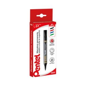 Pentel N50 Marcatore Permanente Punta Conica 4,3 mm - 4 Colori Assortiti (Nero, Blu, Verde, Rosso) - Fusto in Metallo