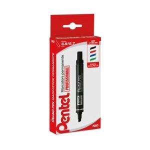 Pentel N60 Marcatore Permanente Punta Scalpello 4 Colori Assortiti (Nero, Rosso, Blu, Verde) - Fusto in Metallo, Alta Indelebilità, Lunghezza Scrittura 400m
