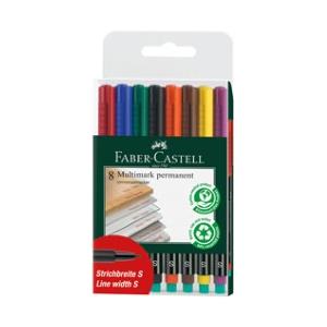 Faber-Castell 152309 Marcatore Permanente con Punta Superfine 0.4 mm e Astuccio da 8 Colori con Gomma Integrata