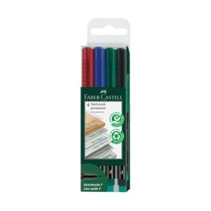 Faber-Castell Multimark Marcatore Permanente con Gomma - 4 Colori Assortiti (Nero, Blu, Verde, Rosso) - Punta Fine 0,6 mm