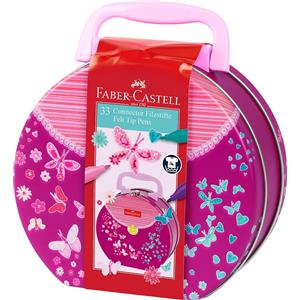 Faber-Castell 155537 - Pennarelli Connector con 33 penne, custodia in metallo, inchiostro lavabile