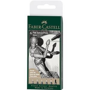 Faber-Castell 167154 Penna Pitt Artist Set di 6 Penne Nere con Spessori XXS, XS, S, F, M, 1,5 mm