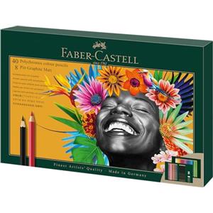 Faber-Castell Set da Disegno 50 Pezzi - 40 Matite Colorate Polychromos e 8 Matite Pitt Graphite Matt con Temperino e Gomma