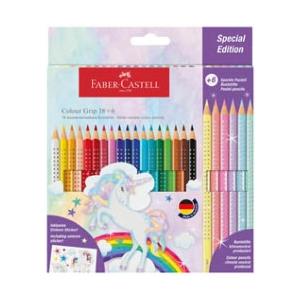 Faber-Castell 201543 Set di Matite Colorate, 24 Pezzi - 18 Matite Colour Grip e 6 Matite Sparkle, Fusto Triangolare Ergonomico, Mina Resistente, Legno Certificato FSC