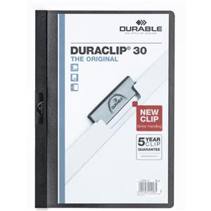 Durable DURACLIP 30 A4 - Cartellina con Clip, Capacità 30 Fogli, PVC, Dorso 3 mm, Nero
