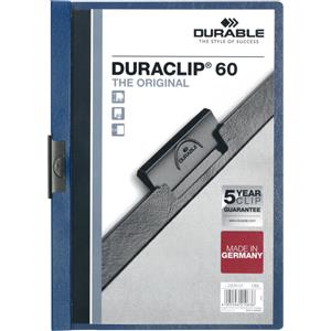 Durable DURACLIP® Cartellina A4 con Clip in Acciaio, Capacità 60 Fogli, Dorso 6 mm, PVC Blu e Copertina Trasparente