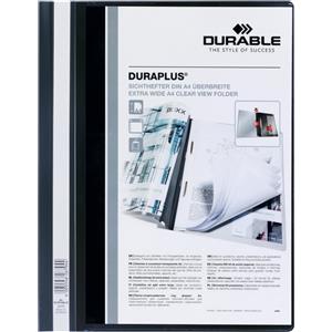 Durable Duraplus Cartellina ad Aghi A4 Nero - Copertina Trasparente Personalizzabile con Tasca Interna - Confezione da 25