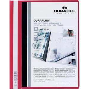 Durable Cartellina ad Aghi DURAPLUS® A4 Rosso - Copertina Trasparente Personalizzabile con Tasca Interna