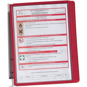 Durable Vario® Wall 5 Leggio da Parete con 5 Pannelli A4 in Metallo/Polipropilene Rosso e Cavalierini Rimovibili