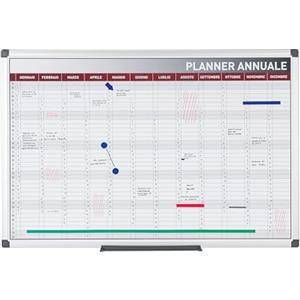 Bi-Office Planner Magnetico Annuale 90x60 cm - Superficie Cancellabile a Secco, 52 Settimane, Inclusi Marcatore e Kit di Montaggio