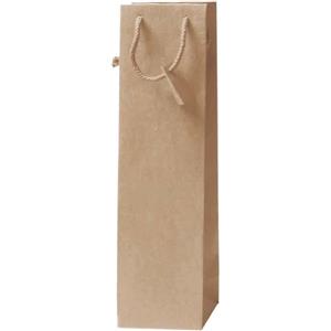 Decoration Borsa Portabottiglie in Carta Kraft Avana con Manico in Cotone - 10x9x39 cm - Confezione da 10 Pezzi