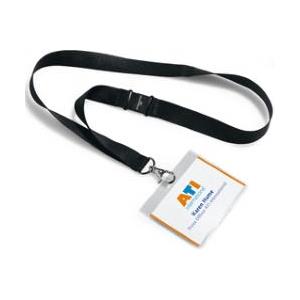 Durable Portanome 60x90 mm con cordoncino in tessuto nero, clip di sicurezza e inserto personalizzabile - confezione da 5