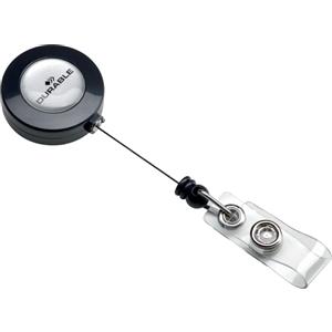Durable 832401 Chiocciola Yo-Yo Style in Metallo Cromato, Filo Retrattile da 80 cm, Fascetta Trasparente con Bottone a Pressione, Nero, Confezione da 10 Pezzi in Scuola e Cancelleria