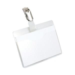 Durable Portanome Tasca Aperta con Clip Orientabile in Metallo - 60x90mm, Confezione da 25 Pezzi, Trasparente