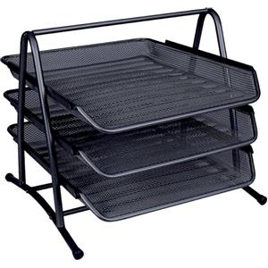 Q-Connect Set di 3 Vaschette Portadocumenti in Metallo Nero - Dimensioni 27,8x27,5x35 cm