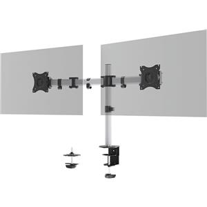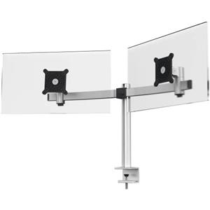 Durable 508523 Braccio Porta Monitor Pro per 2 Monitor da 21-27'' con Morsetto, Ruotabile 360°, Inclinabile, Altezza Regolabile, Argento