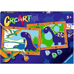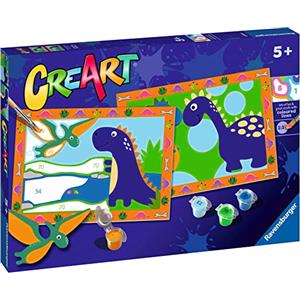 Ravensburger CreArt 5 Anni Junior: Dinosauri- Dipingere con i Numeri per Bambini 5+ Anni, Kit Pittura con 2 Tavole, Pennello Ergonomico e Colori Inclusi, 32 x 22 cm, Idee Regalo per Bambini 5 Anni
