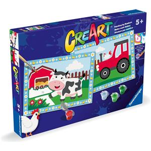 Ravensburger CreArt Serie Junior Fattoria - Kit Pittura per Bambini, Dipingere con i Numeri, Gioco Educativo, Tema Animali, 32x22 cm, Regalo per Bambini 5 Anni