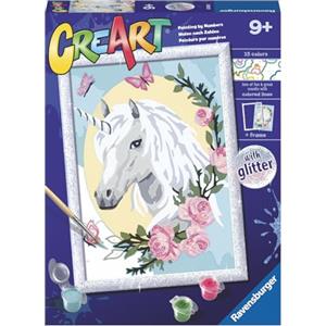 Ravensburger CreArt: Ritratto unicorno - Dipingere con i Numeri per Bambini 9+ Anni, Kit Pittura con Tavole, Cornice con Brillantini, Pennello e Colori Inclusi, 18 x 24 cm, Idee Regalo