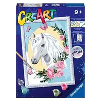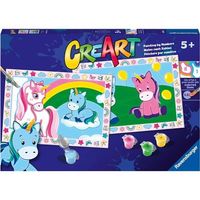 Ravensburger CreArt Serie E: Kit per Dipingere Unicorni con Arcobaleno, Completo di Tavola Prestampata, Pennello e Colori, Gioco Educativo per Bambini 7 Anni