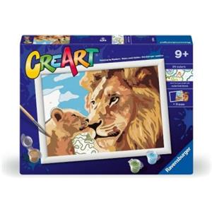 Ravensburger CreArt Serie D: Leone e Cucciolo - Kit di Pittura per Bambini 9 Anni, Dipingere con i Numeri, Cornice Inclusa, 18x24cm