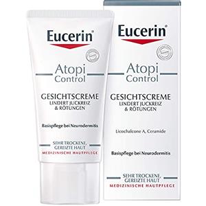 Eucerin AtopiControl Crema Viso 50ml - Trattamento quotidiano per dermatite atopica con 12% Olii Omega e Licochalcone A, senza profumo e parabeni in Prodotti per il Viso