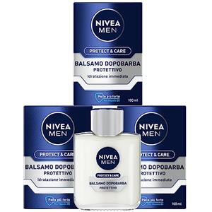 Nivea Men Protect & Care Balsamo Dopobarba Protettivo After Shave Uomo con Aloe Vera Vitamina E e Pro-Vitamina B5 Balsamo Barba Idratante - 3 Flaconi da 100ml