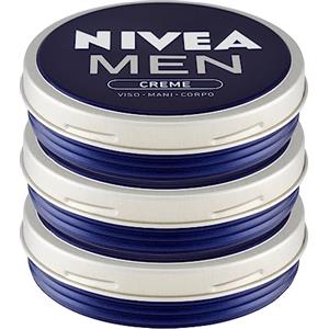 NIVEA Men Creme Crema Idratante Uomo Multiuso per Corpo Mani Viso Rapido Assorbimento sulla Pelle - 3 Barattoli da 75ml
