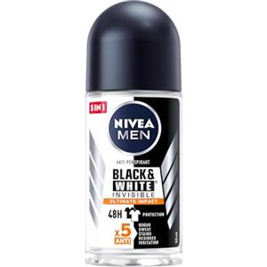 Nivea Roll On Men 50 ml (confezione da 6) Invisible for Black & White Ultimate Impact Long-lasting Protection Against Yellow Stains 48 ore Sweat Protection with Skin Care