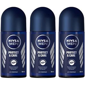 NIVEA MEN Protect & Care Roll-On Deodorante antitraspirante 3 x 50 ml da uomo con 0% di alcool deodorante roll-on con Nivea Men Care Complex regola la traspirazione per 48 ore