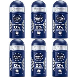 Nivea Men Protect & Care Roll-On Deodoranti antitraspiranti, da uomo, 0% alcol e alluminio (ACH), deodorante roll-on per 48 ore, 50 ml, confezione da 6 pezzi