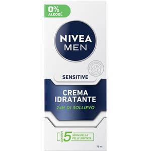 Nivea Men Sensitive Crema Idratante Uomo 75 ml - Lenitiva per Pelli Sensibili, 0% Alcool, Senza Profumo