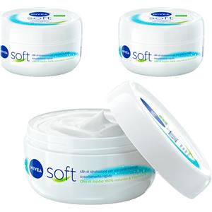 Nivea Soft 200 ml Crema idratante corpo viso mani multiuso con Vitamina E e Olio di Jojoba 3pz