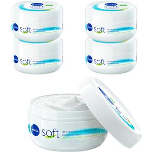 Nivea Soft 200 ml Crema idratante corpo viso mani multiuso con Vitamina E e Olio di Jojoba 5pz