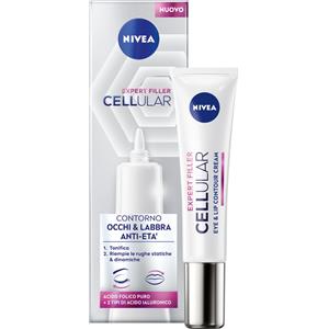 Nivea Cellular Expert Filler Crema Contorno Occhi & Labbra Anti-Età 15 ml - Rassodante e Antirughe con Acido Ialuronico