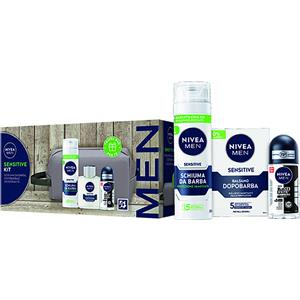 NIVEA MEN Sensitive Kit - Set Regalo con Schiuma da Barba 200 ml, Balsamo Dopobarba 100 ml, Deodorante Black & White 50 ml e Travel Bag Inclusa in Set Regalo Bellezza
