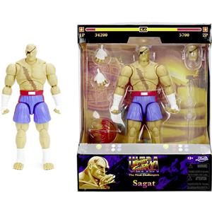 Jada Toys Statuetta Sagat 19 cm - Personaggio mobile da collezione di Street Fighter II con testa alternativa e accessori