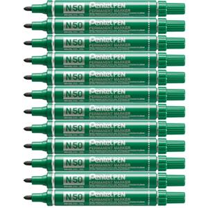 Pentel N50 Marcatore Permanente Verde Punta Conica 4,3 mm Fusto in Metallo 12 Pezzi