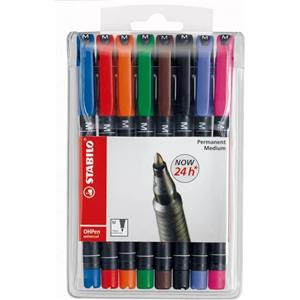 STABILO OHPen Marcatore Permanente 1 mm - Astuccio da 8 Colori Assortiti, Ideale per Superfici Lisce