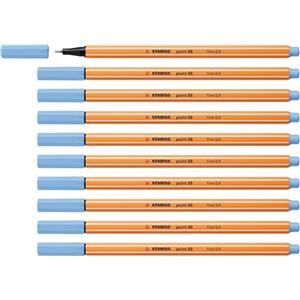 Stabilo Point 88 Fineliner Azzurro Chiaro 0,4 mm - Confezione da 10 Pezzi con Punta Rinforzata e Fusto Esagonale